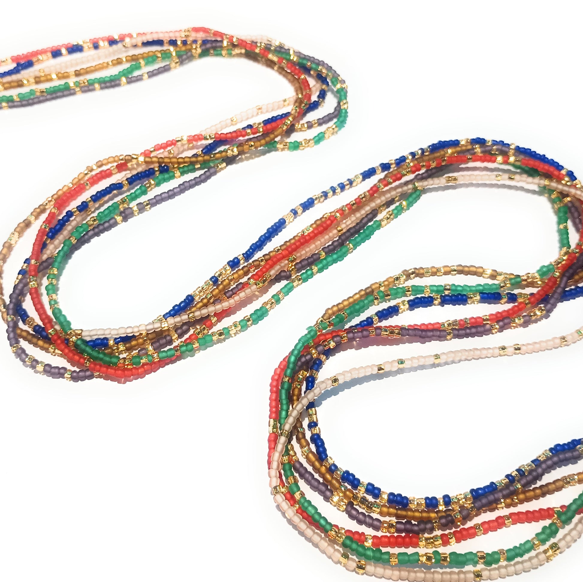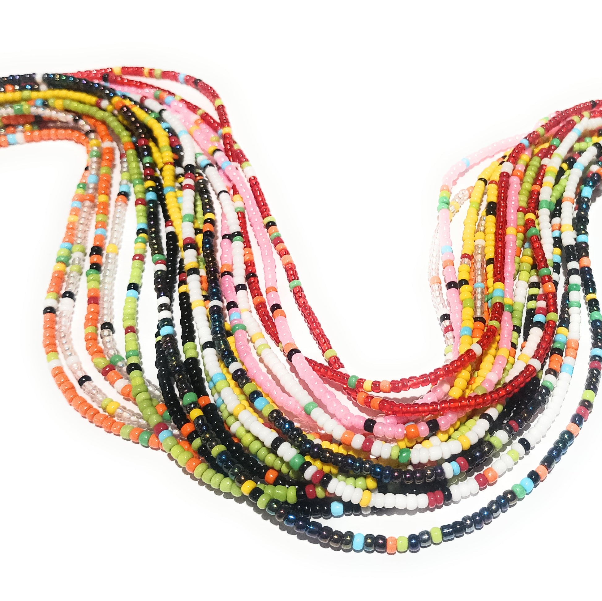 Each strand is at least 44 inches of glass beads on thick cotton threaded strings.